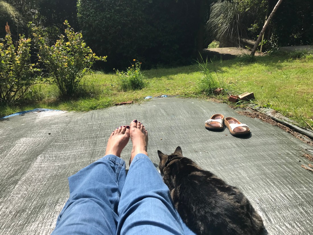 On one of our Quiet/Meditation Days recently, the sun came out and I went and relaxed in the garden and forgot about it all for a bit. The cat (Xena, Warrior Princess, who is still scared of the cat flap) came and settled next to me in the sun. My brain enjoyed the rest, my body relished the gentle English sun, and I had one of those moments of suddenly feeling very maternal towards the cat. And of being aware that there is so much that I will miss about home while I am away, even though I know the 3 months will surely feel like they’ve flashed by in the end.
