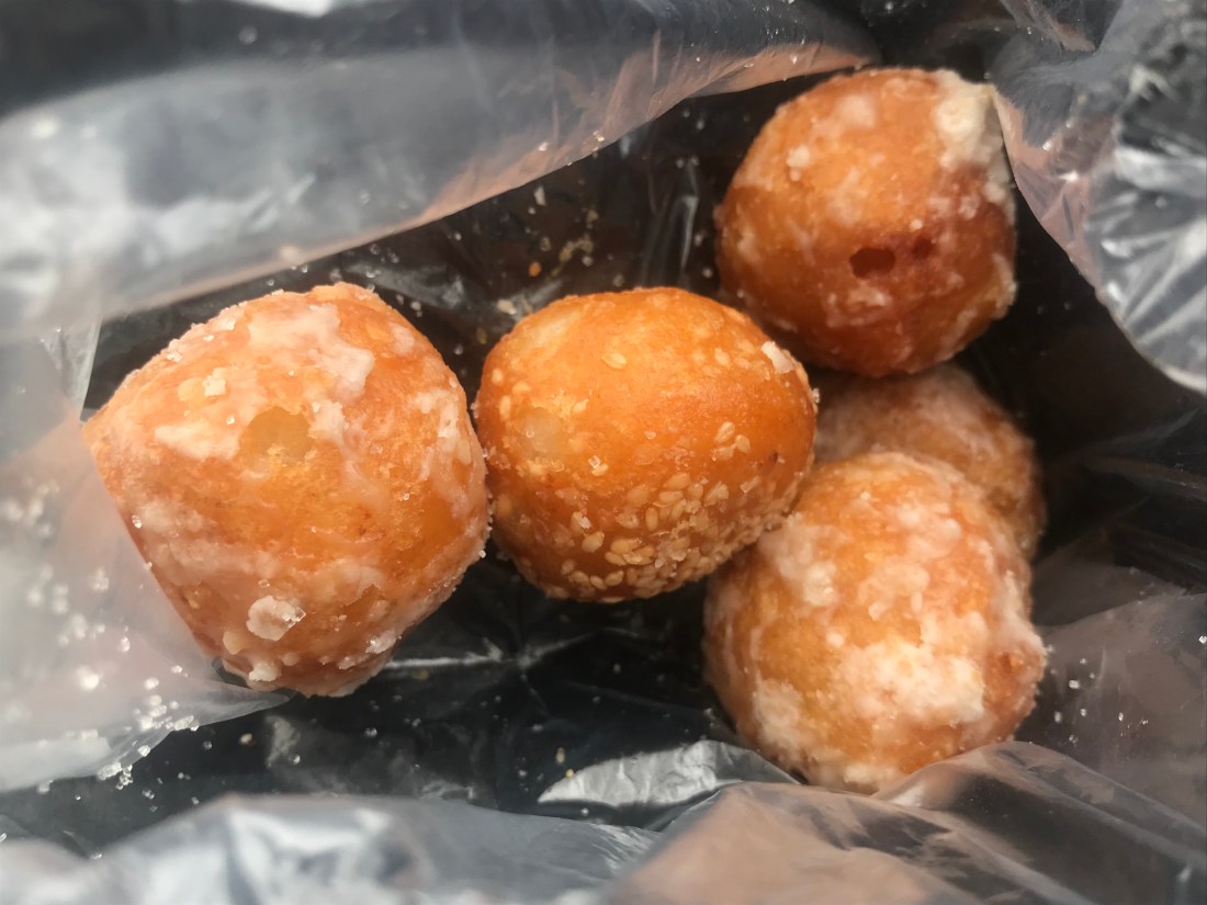 The Devil’s dumplings, or so I named them! Doughnut-type things that I accidentally bought. The lady gave me one to try before I had realised that this is the ploy to pressgang you into buying some: