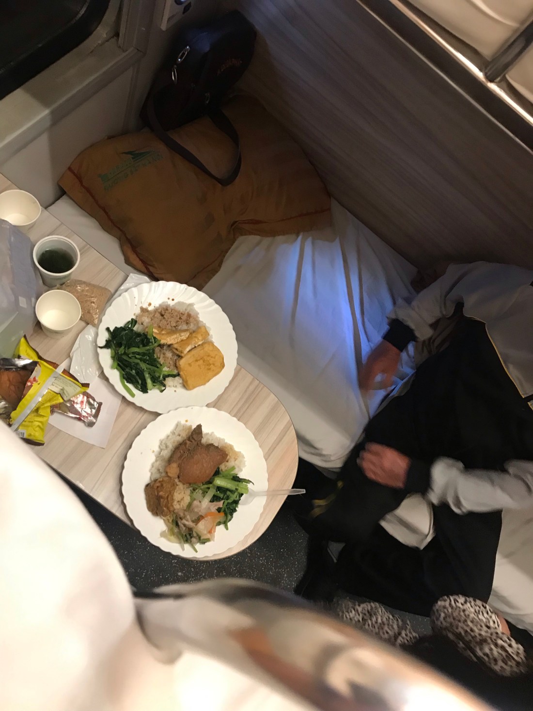 This was the hot meal they were serving on the night train if you paid extra for it. They somehow managed to wheel a trolly containing all this down the incredibly narrow corridors and dish it up right outside your carriage: