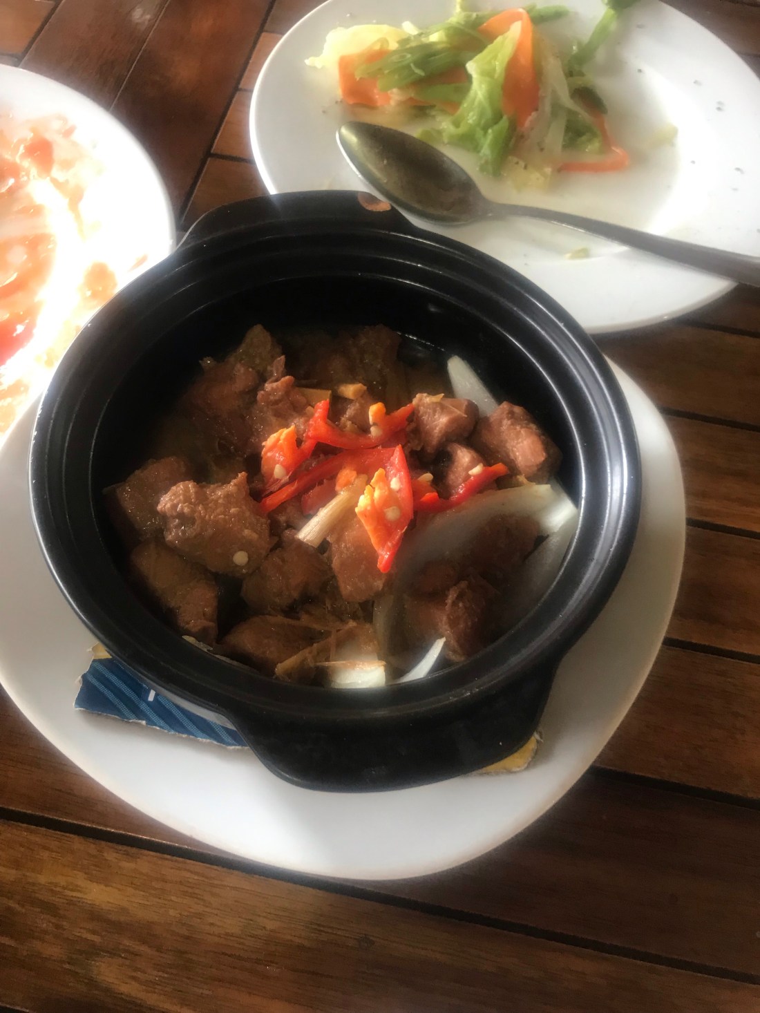 Claypot restaurant… Maps Me had a note on it saying “Eat here. It’s delicious” or something. It was correct! Another smoothie, with complimentary nuts: