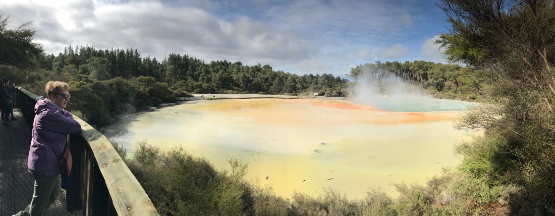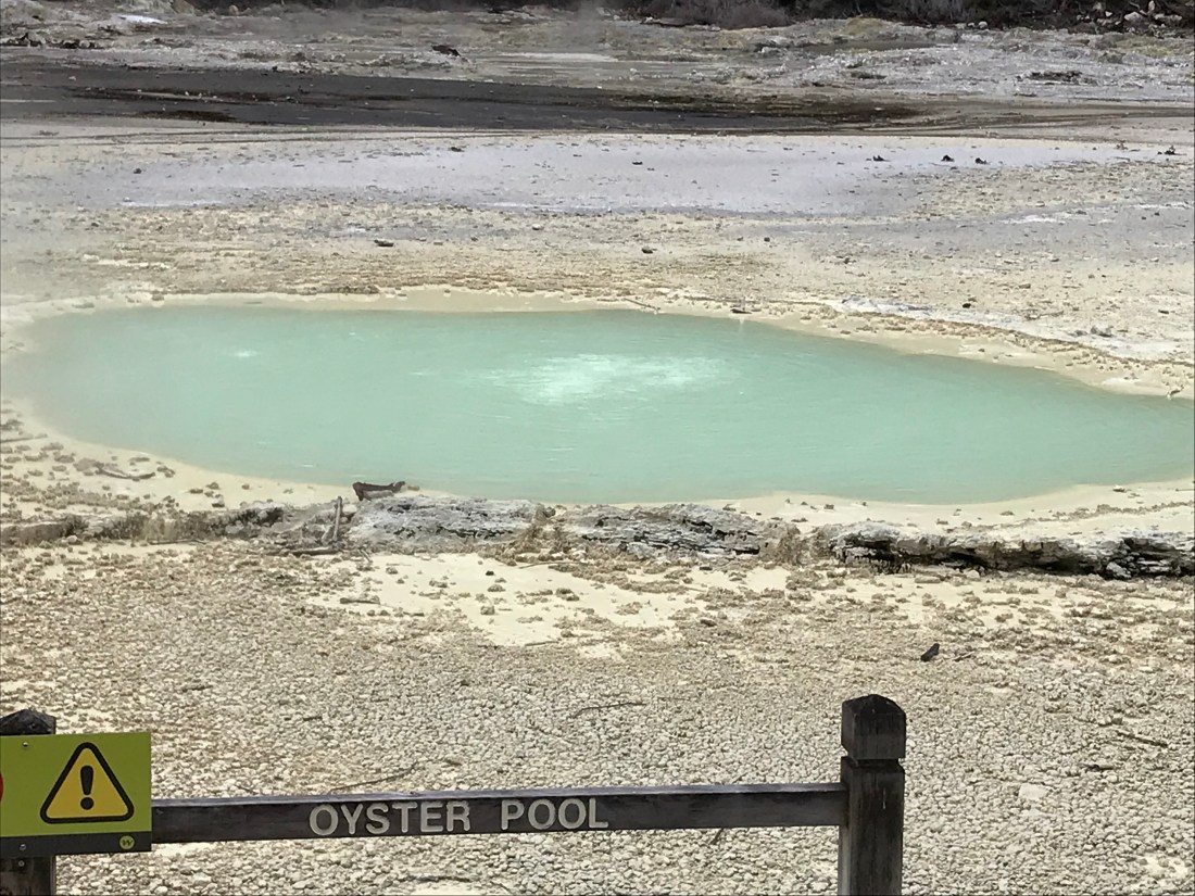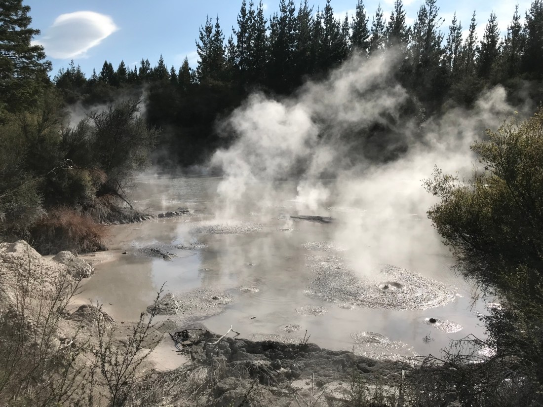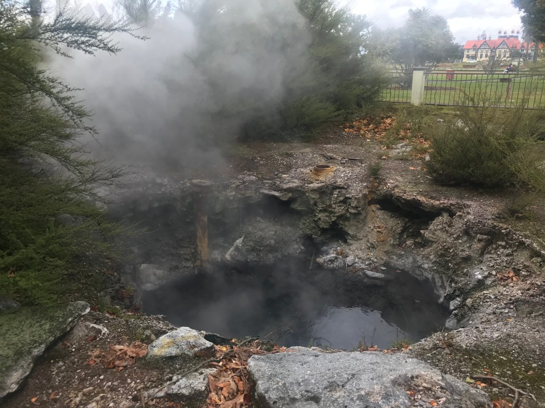 The Buried Village is a village that ended up buried under several feet of mud after a volcano erupted at the far side of the first lake I posted a picture of in this post. The huge eruption happened in 1886, and buried most other villages in the vicinity under 15 metres of volcanic mud. The village that has been excavated came off better because it was sheltered to some extent by the local hills. But some people did die, too, as bits of buildings fell on them. Some of the very simple Maori whake dwellings survived, however, turning out to be some of the safest refuges for people to shelter in.