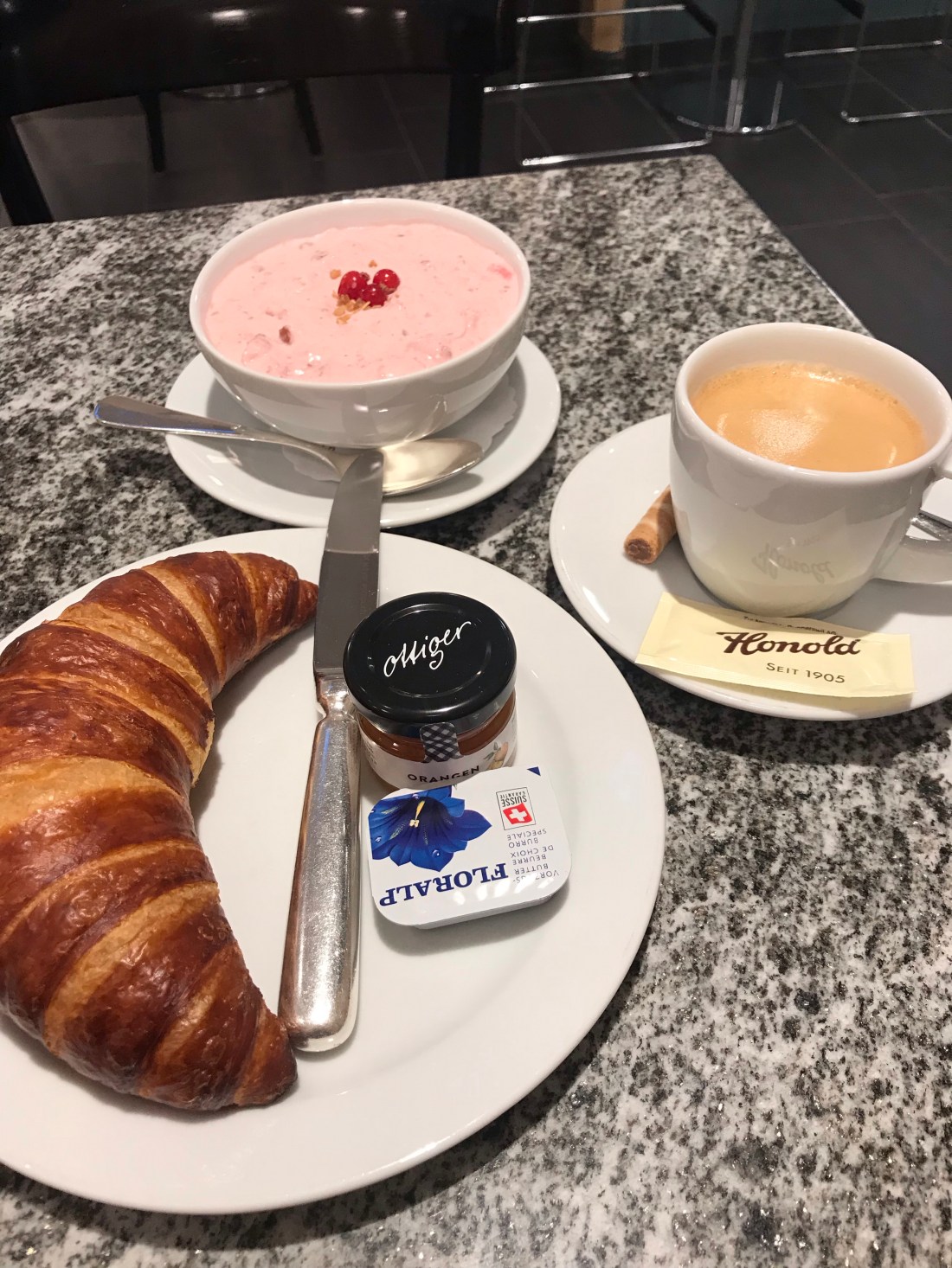Most things were not open when I arrived, but I gratefully found a very swish café already serving breakfast, which I was ready for despite having had a collection of boiled veg on the plane (hmmm vegan breakfast fail Swiss Air! Though the hash brown was tasty). From the café I established contact with Delia who I’d meet the next day. The bowl of pink stuff was delicious bircher 😋