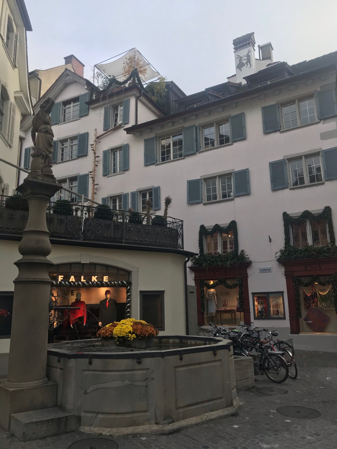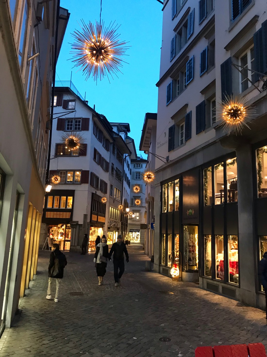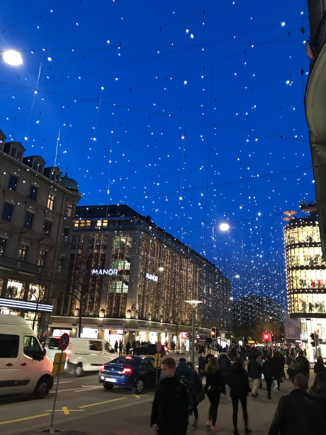 Somehow, in spite of my plans to spend a lazy day in the hotel, Zürich enticed me to stay until the evening, when the whole place was lit with tiny white fairy lights apparently strung from the sky like stars.