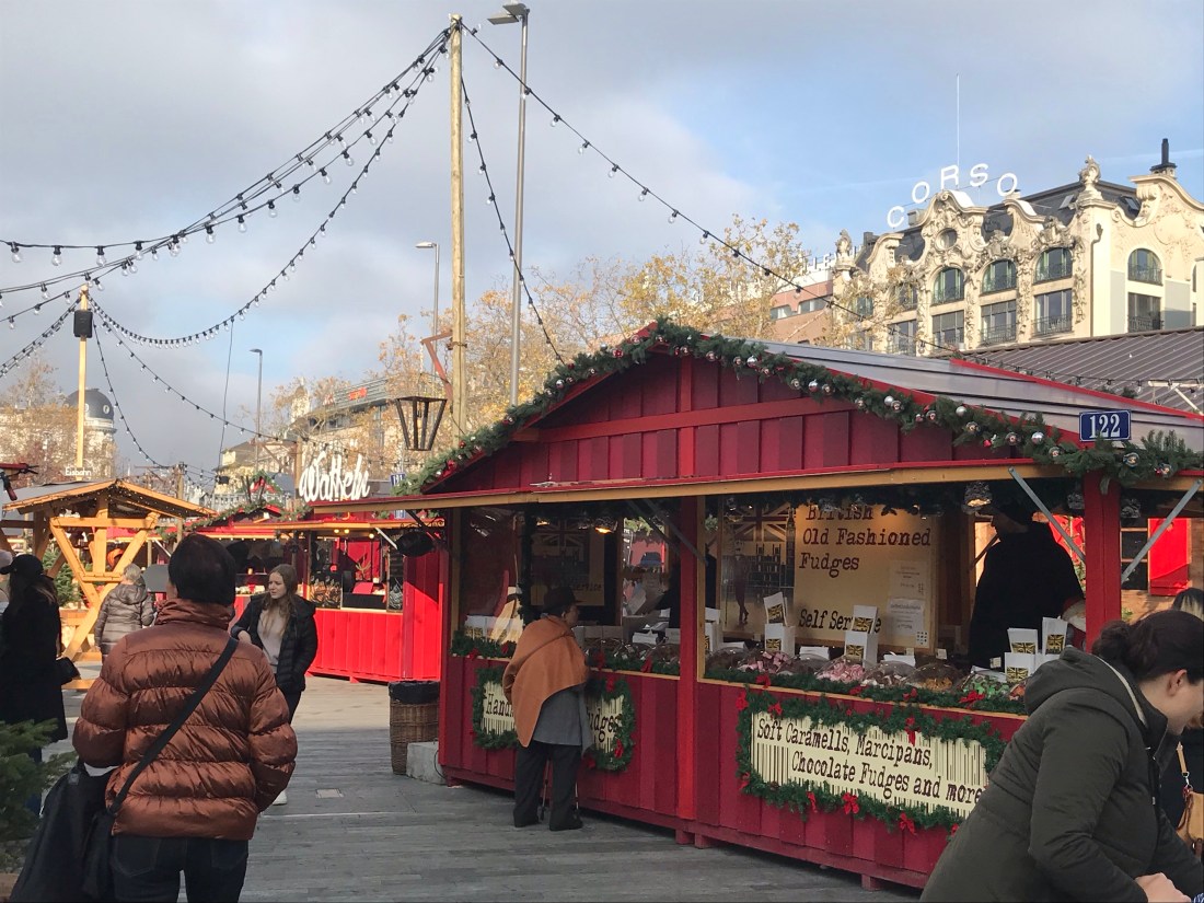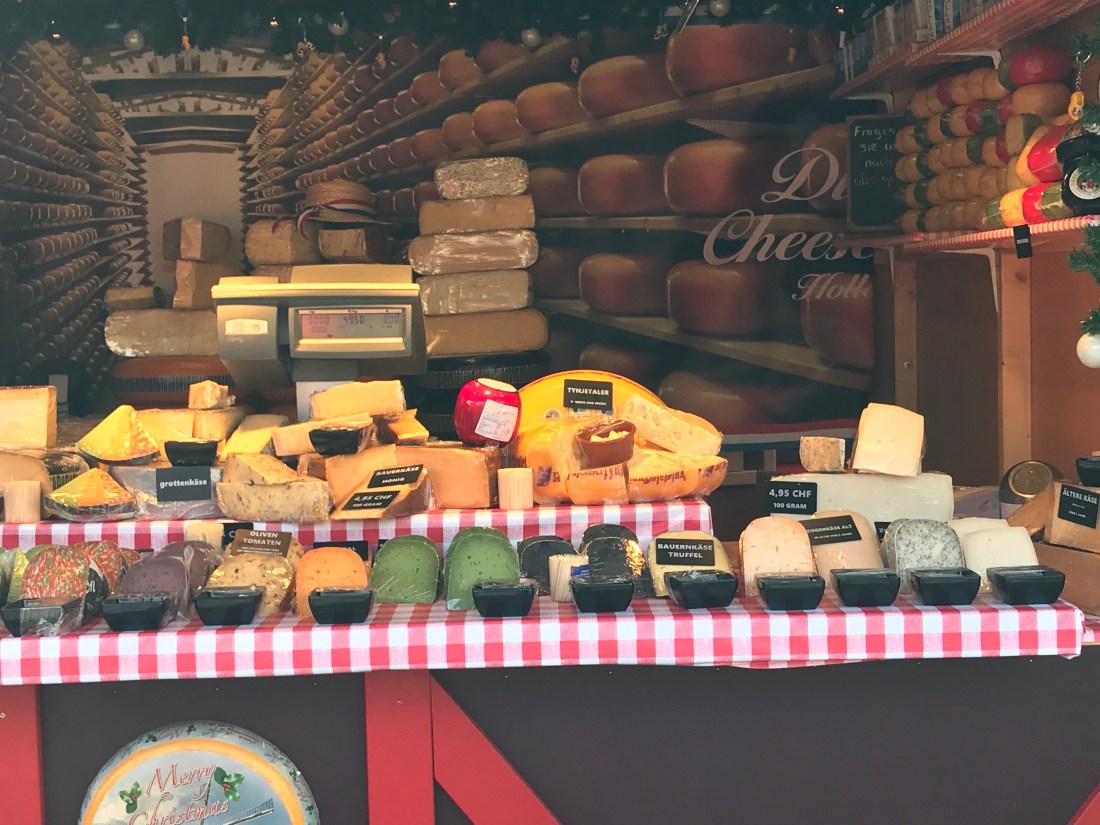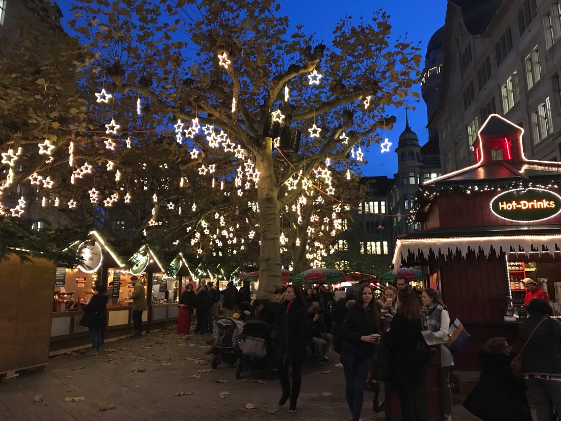 There’s a main Christmas market, not far from the river and the centre of Zürich, but actually there are lots of little cobbled corners lit up with huge Christmas trees and temporary lanes of wooden huts selling Glüwein, Wafflen, Würst, along with every kind of gift you can imagine.