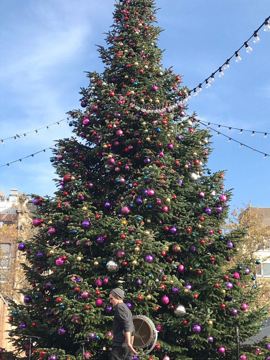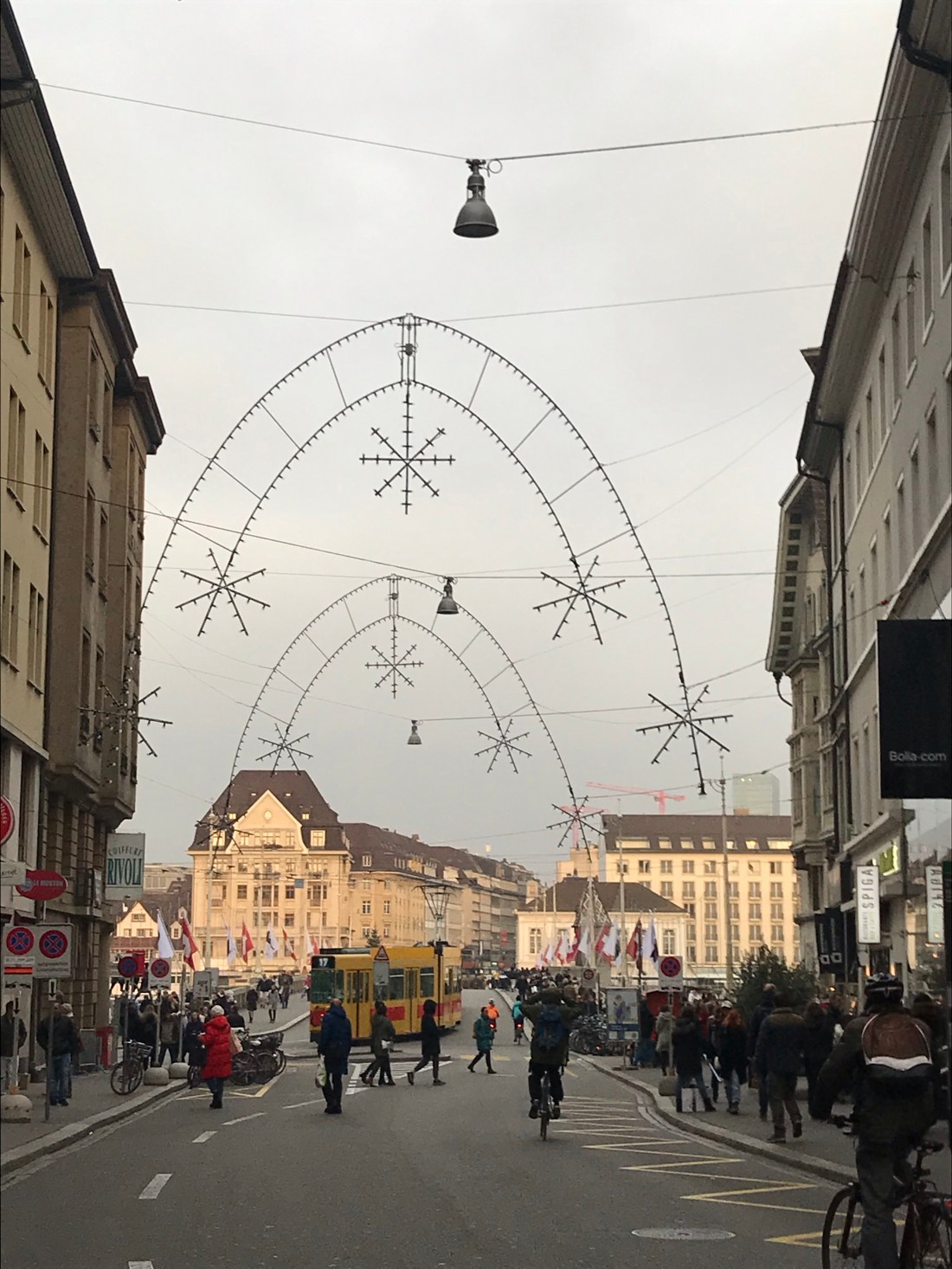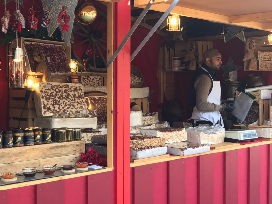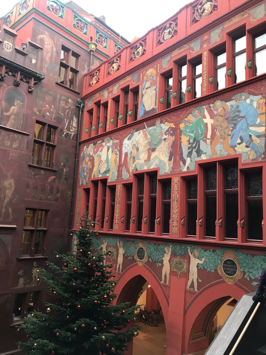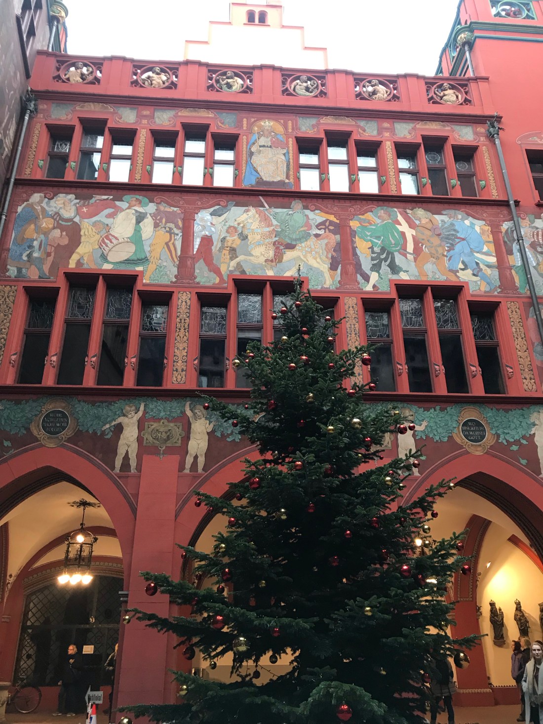 We decided to go to Colmar, which is in France, just because we could. It’s a famous little town in Alsace that’s very pretty and had begun it’s Christmas market already. We took the train from the French part of Basel station (having negotiated the completely different ticketing machine successfully, which took some time!). Then, when the ticket collector came round, we realised we’d failed to get the ticket stamped by the machine on the platform before we got on the train. Fortunately he was kind and realised we were not used to this system, so didn’t charge us double as a result (apparently the normal fine). Thank goodness not everyone is a “jobsworth”! The greater surprise to me was that at no point did we have to show any ID, even though we crossed a border. And no one inspected our bags. The ticket collector just looked slightly envious as he said, “I guess you’re going to the Christmas market are you?” (In French, of course.)