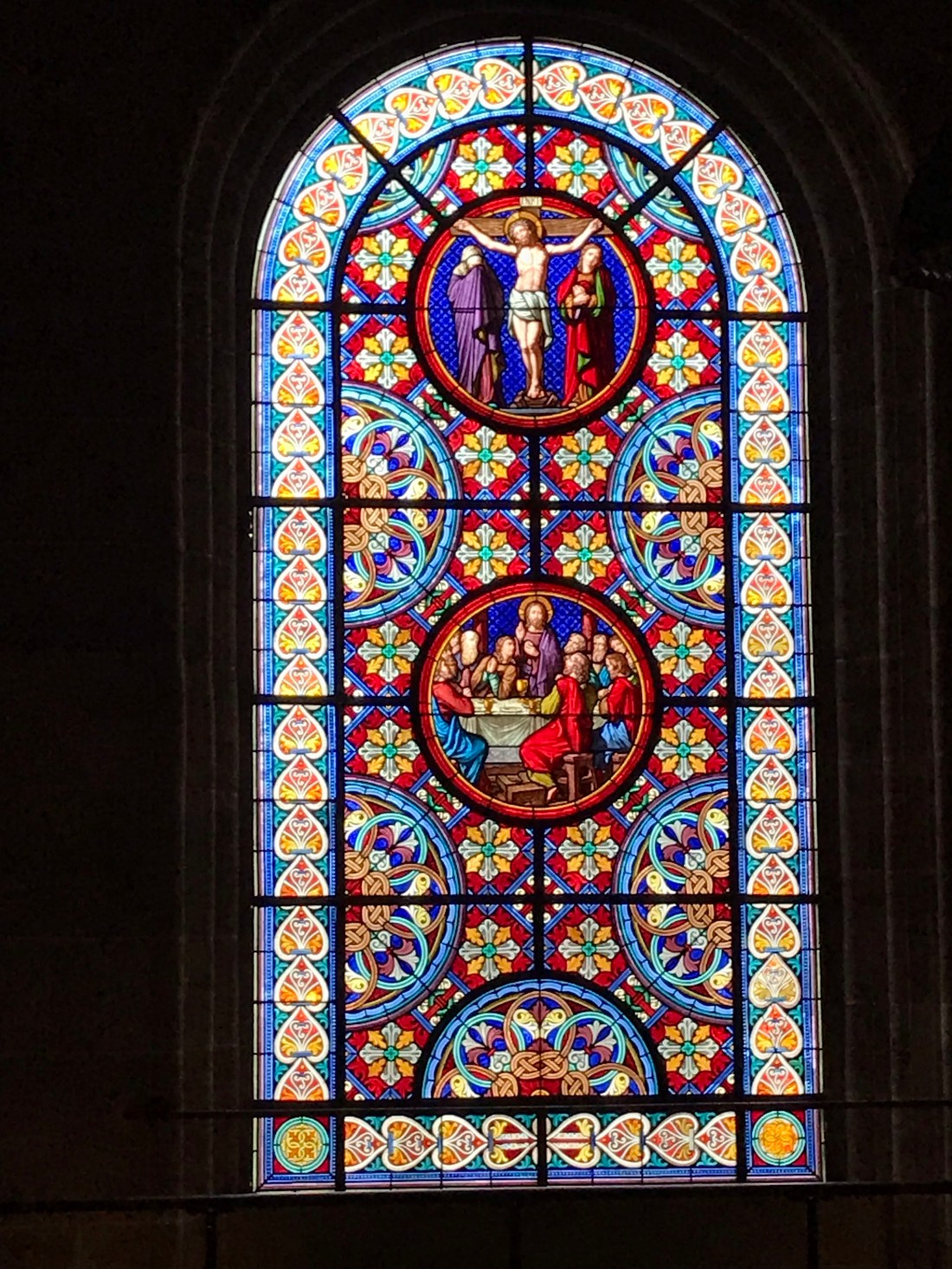 The left hand side of Jesus’ face (ie the right as we look at it) here represents the suffering Christ on the cross, and the right hand side (on our left) the risen Christ. But what I noticed most was the luminous word of God. Perhaps because I’ve spent a while in this country with all the Reformation talk. The Reformation, at its best, was all about giving ordinary people access to the word of God (the Bible) in their own language, so they could read it for themselves and not have to rely on whatever the priests told them it said. Well, that’s my very “power to the people” simple summary, anyway.