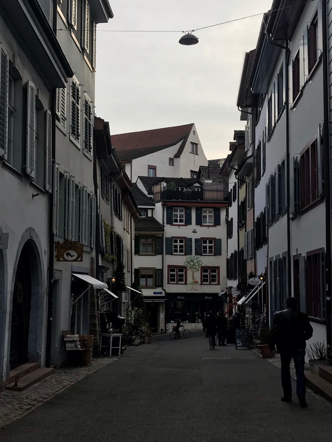 Attempting to feel my way towards the centre of things, I gravitated towards the river, lined with pretty Swiss houses replete with wooden shutters. Then stumbled across a music shop, where I warmed up for a bit browsing the shelves.