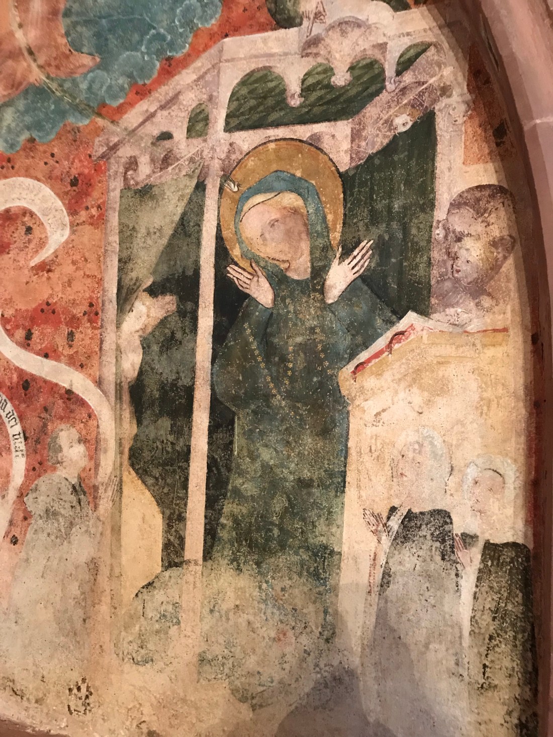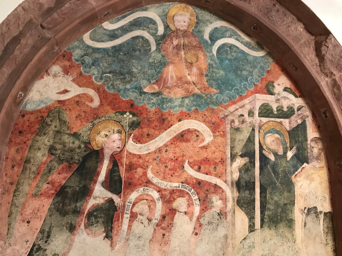 I was either too late or you can’t currently see inside the church space where apparently there are five windows by Mark Chagall and another one by Giacometti that I’d have loved to have seen. But I could see the numerous frescoes on the cloister walls.