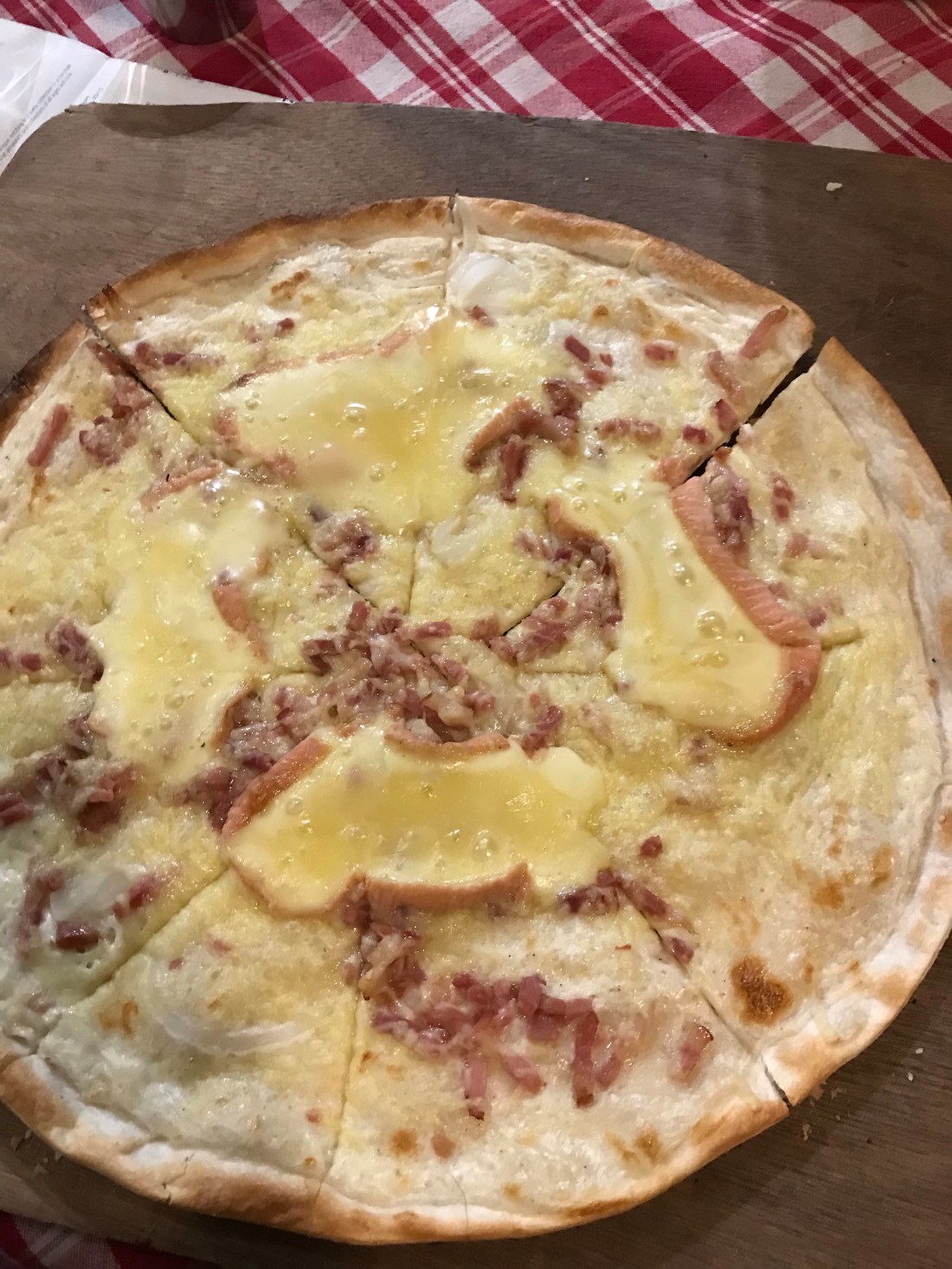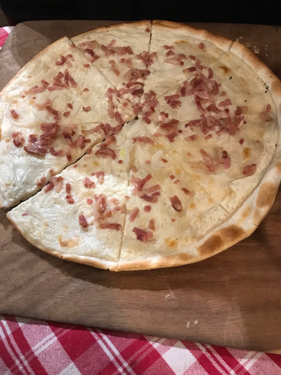 We had tarte flambée (Flammekueche) for lunch (a traditional Alsace meal, a bit like a light form of pizza, with bacon, onion, cream and cheese topping), and later on warmed up with du vin chaud in my case and a hot apple juice in Delia’s.