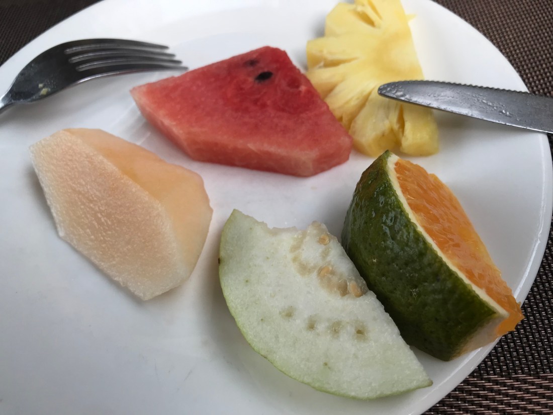 I searched the extensive menu fruitlessly for anything that was just vegetarian (I could’ve got a plate of green vegetables, but that was about it). As Shiv had said, I could have said “Today’s my vegetarian day” and they might have managed to give me something appropriate. I could have, but on this occasion I didn’t. Here was my delicious main course. The orange sauce was very spicy indeed: