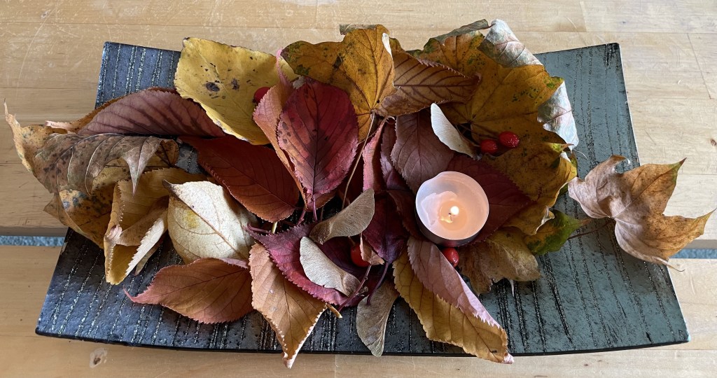 Then I’ve been reading about rest and sabbath as I land finally on a very long-awaited day off today. In this moment of stillness, invited by the slowing of a rest day, my eye caught the pattern of shadows on the wall as the trees were being blown about. I decided to film them, suddenly realising in so doing that in our urban location some massive and possibly awful thing is happening (or maybe many awful things), judging by the number of sirens in the background. I notice these, offer my stillness as some kind of prayer, and return to relishing the moment; the wind, the autumn leaves, the unseasonal warmth which invites my sitting outside.